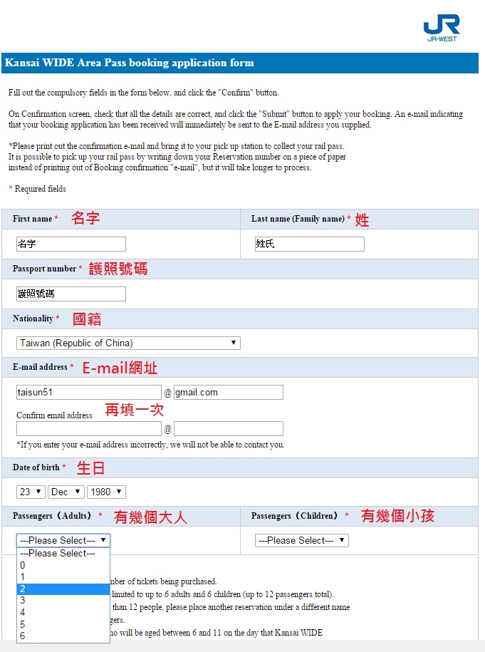 記得填寫的資料就照你的護照資料去打