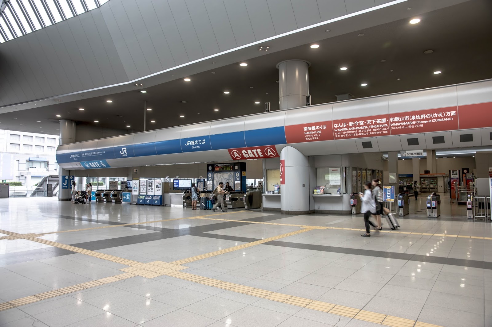 藍色的部分是JR鐵道, 要搭乘Haruka, 關空特快請走藍色這邊