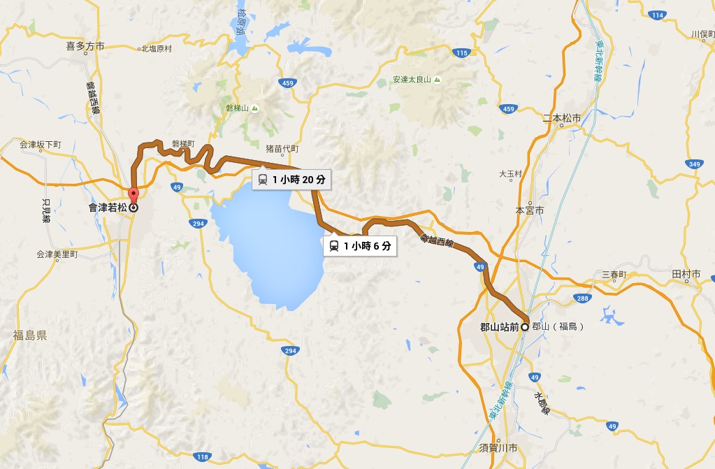 從郡山搭盤越西線的火車進去到會津若松最快要一個多小時