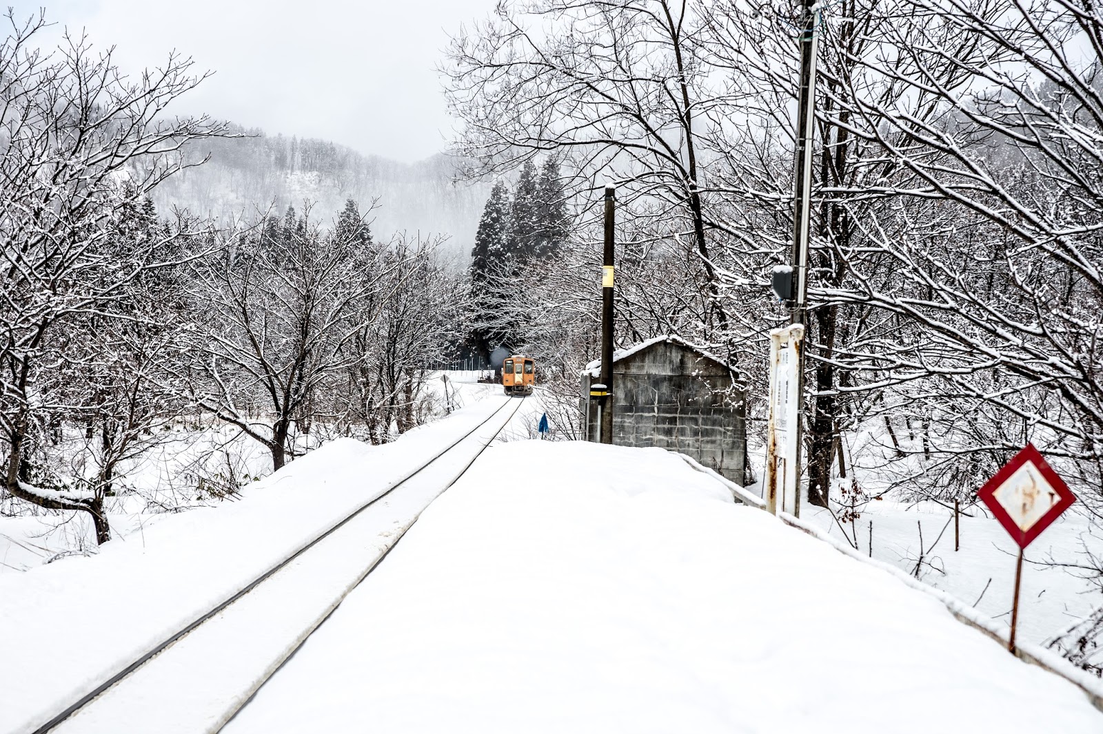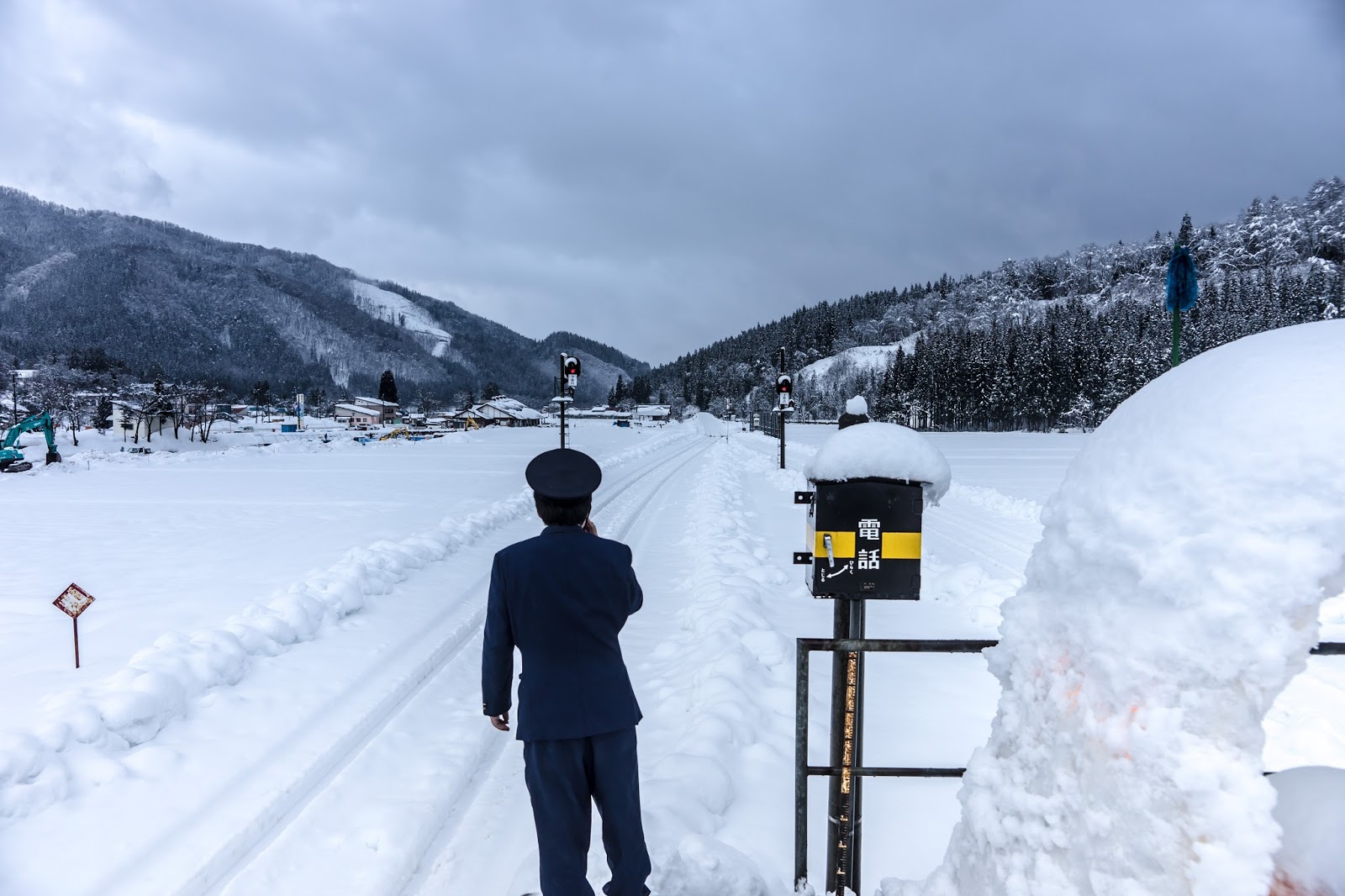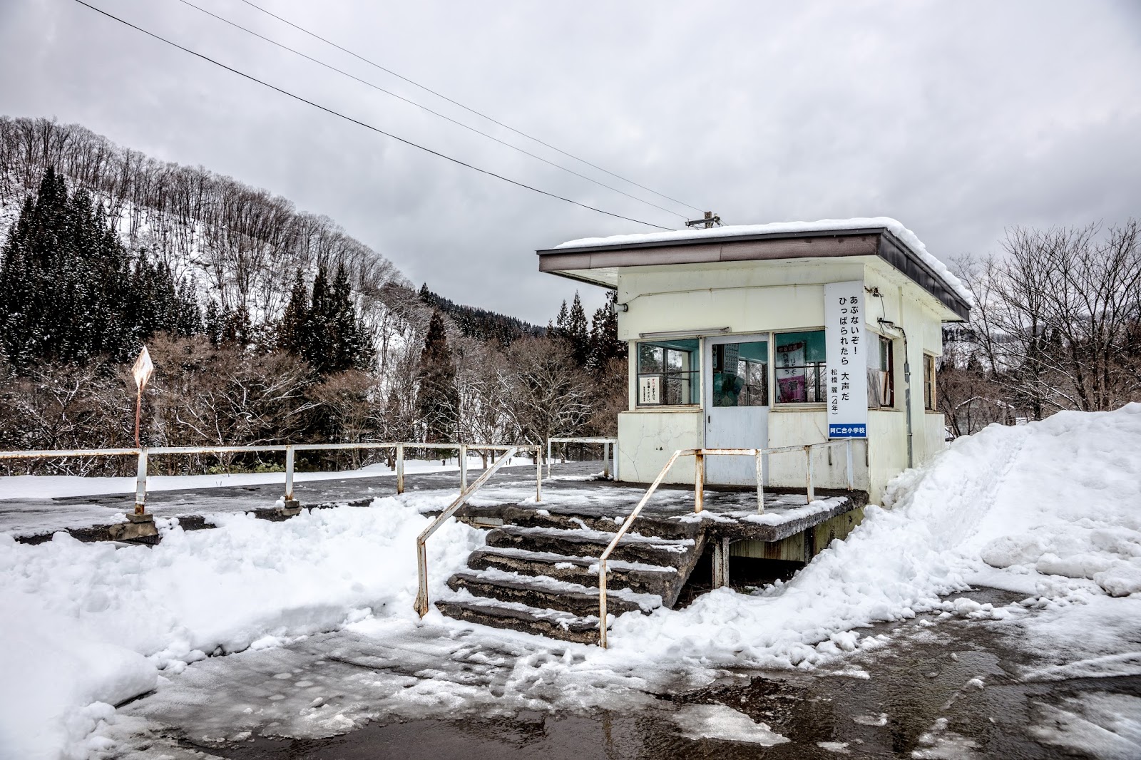 萱草站遠遠看就這樣一個小小候車亭, 大雪紛飛的時候其實很容易找不到