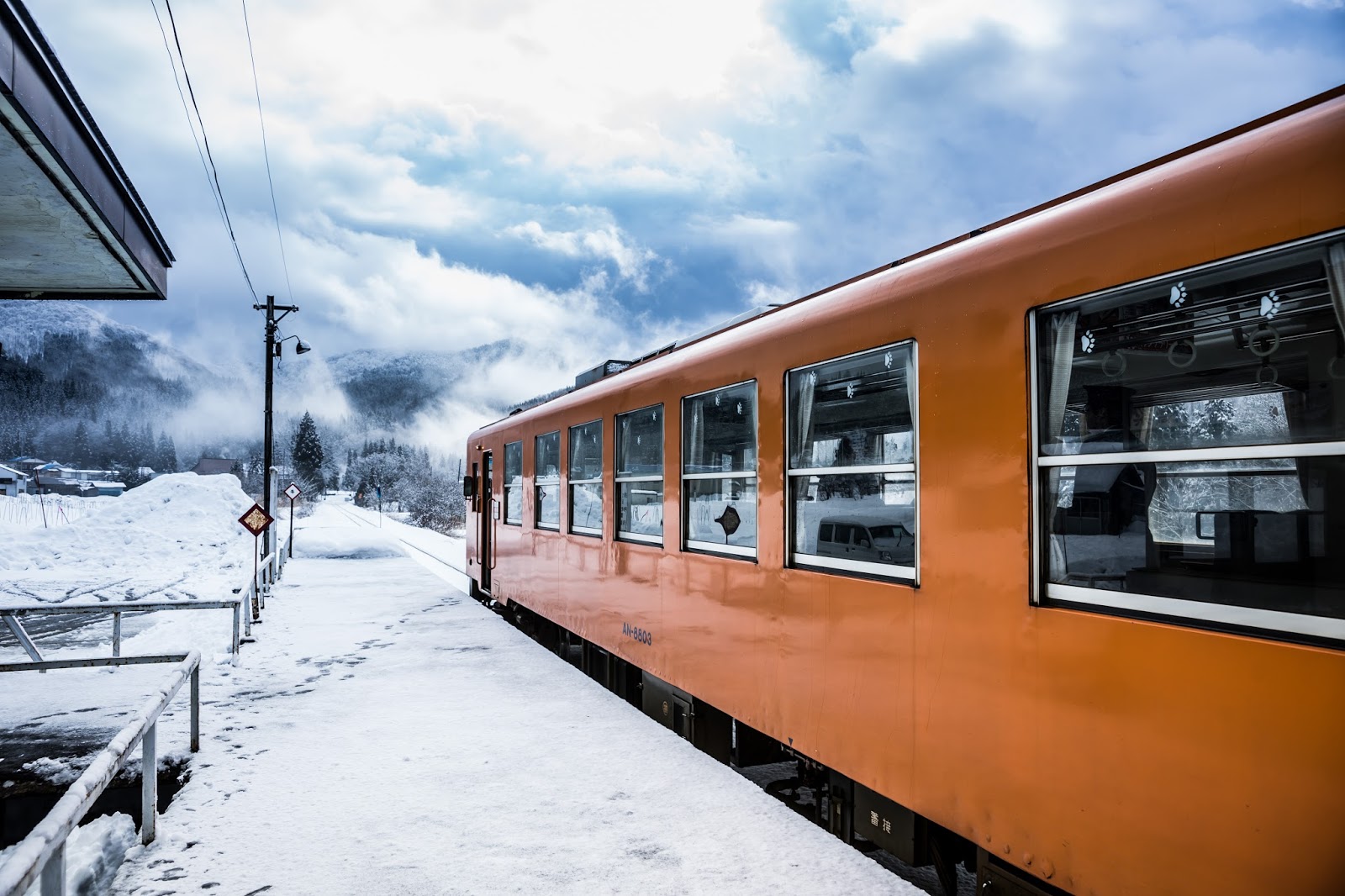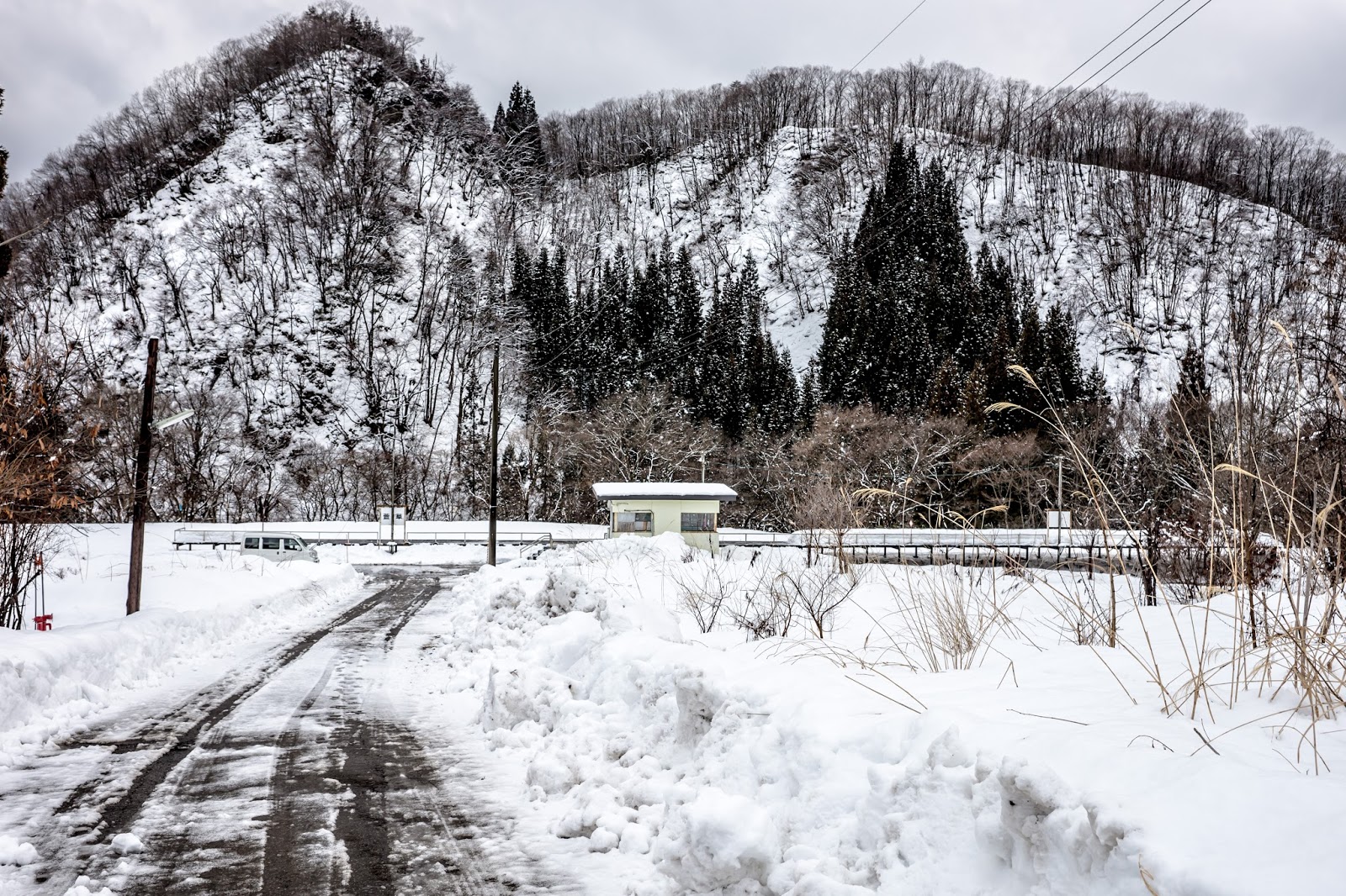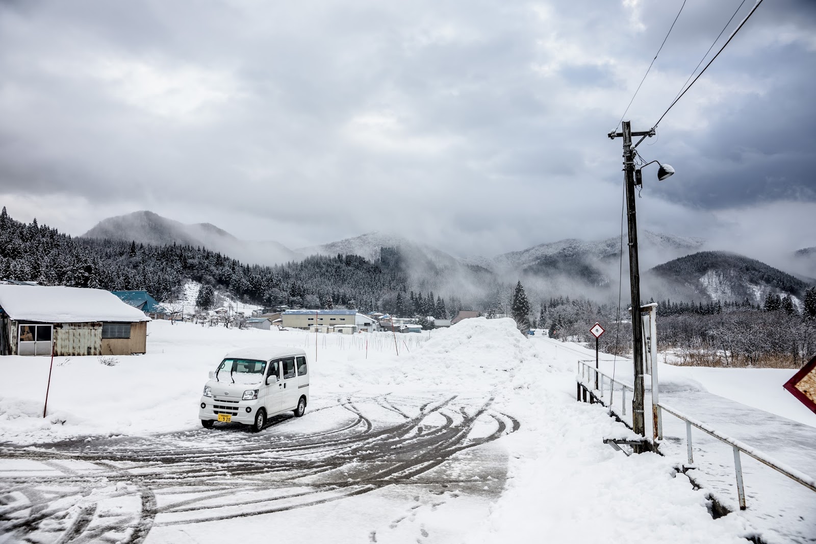 萱草站遠遠看就這樣一個小小候車亭, 大雪紛飛的時候其實很容易找不到