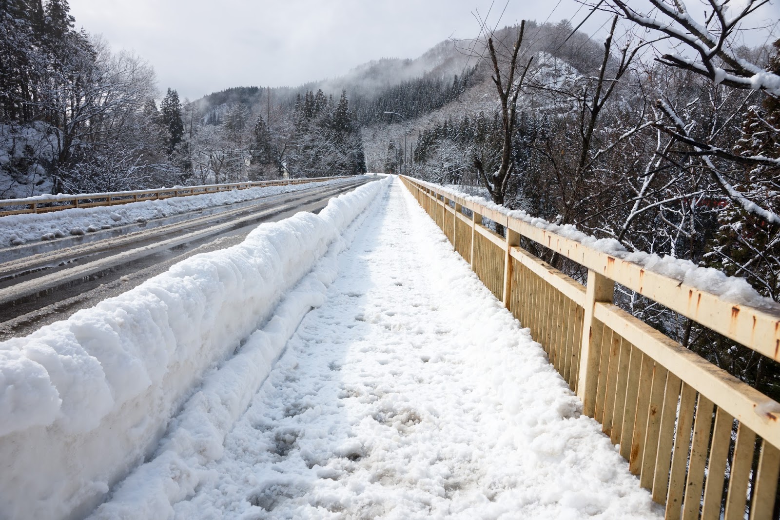 橋上的人行步道, 積雪也這麼深>"<