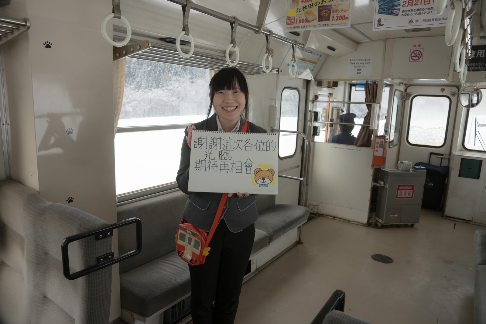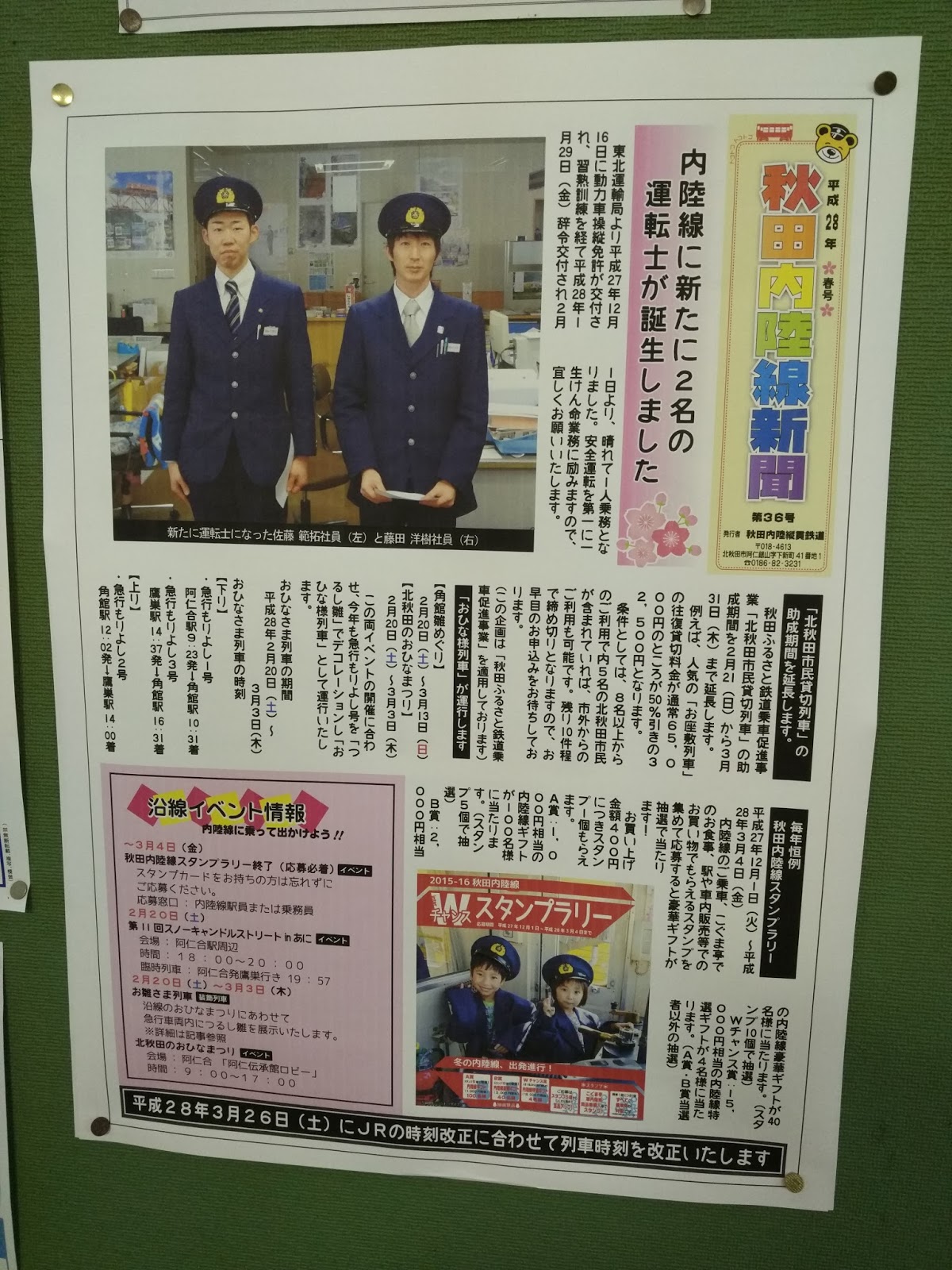 秋田內陸線的自辦新聞, 頭版標題就是歡迎兩位新來的運轉士(司機)