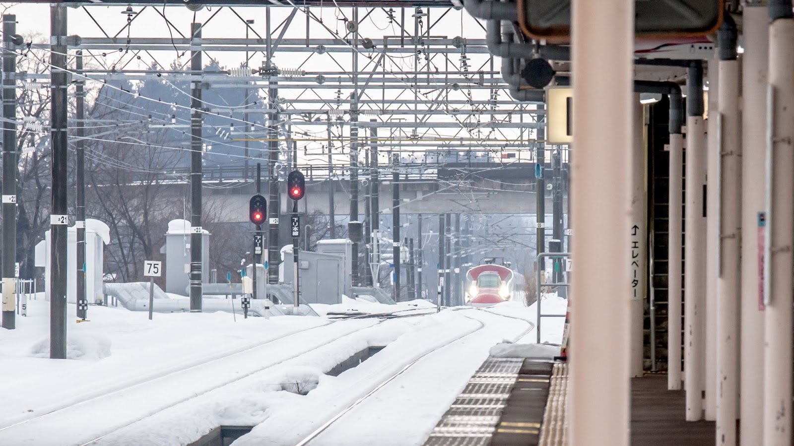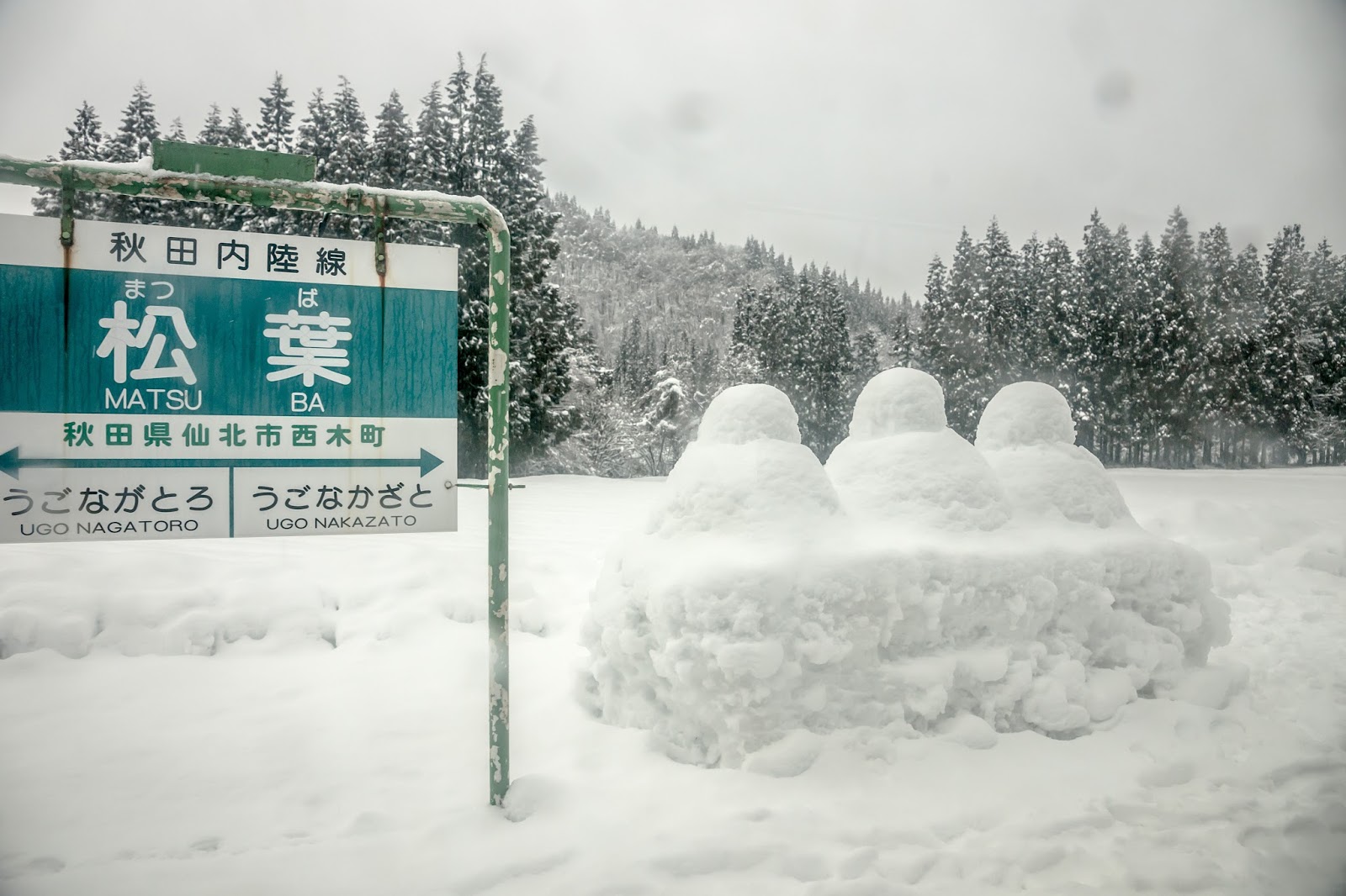 中途經過的松葉站, 月台上看不清楚的雪雕