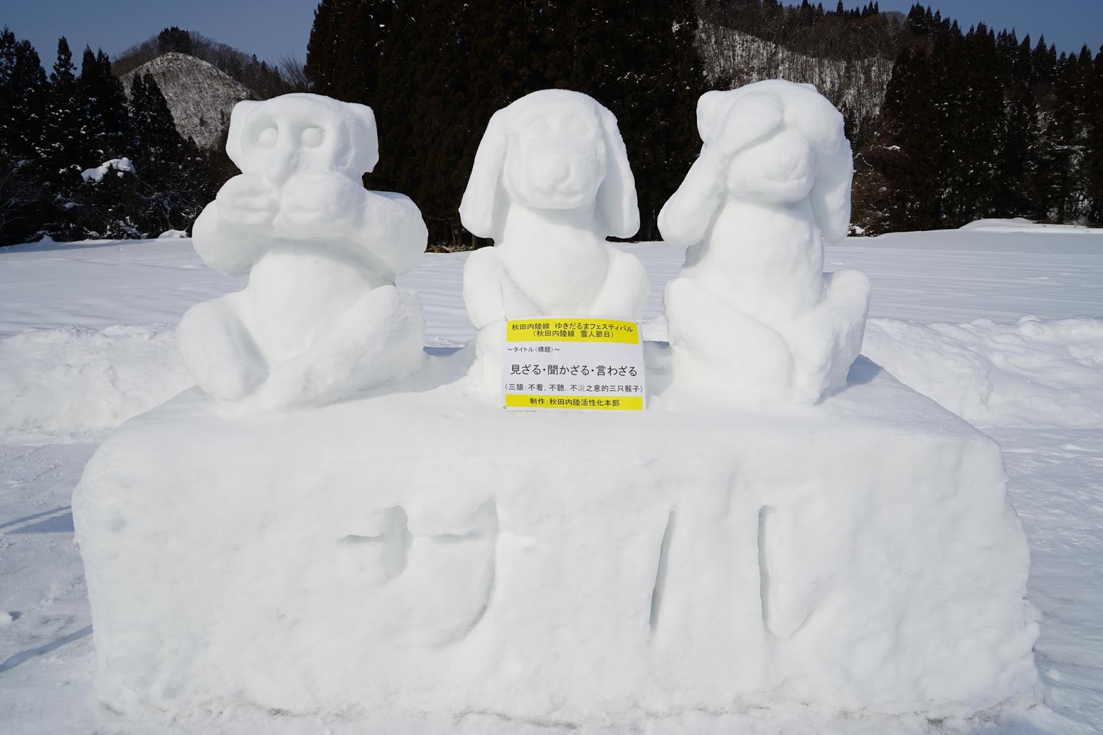 這是三尊代表不聽不說不看的雪雕