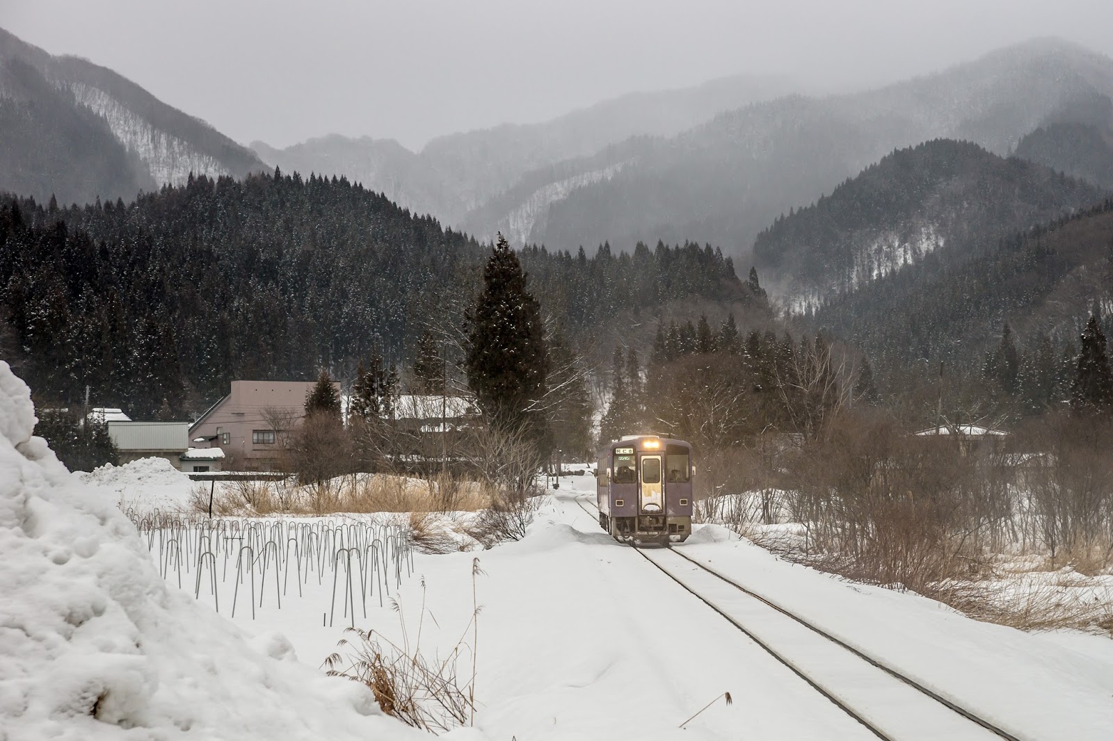 最後在大雪紛飛的狀態下, 對向的列車總算到達了!!!