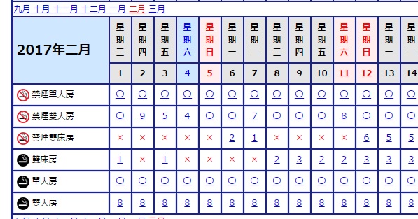 1. 住宿的天數: 比方上一張照片裡頭的禁菸雙床房, 只有2/6~7有空房