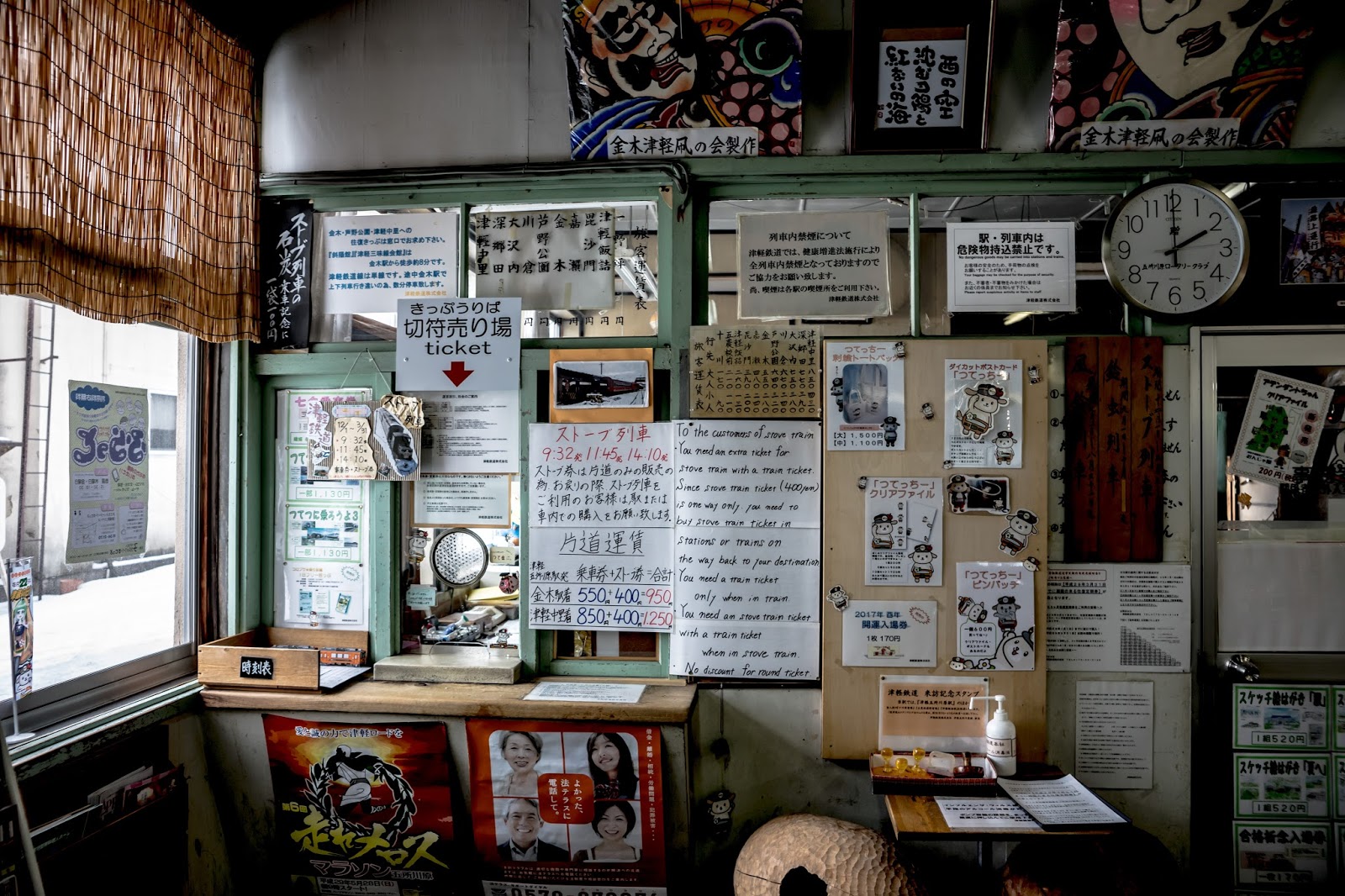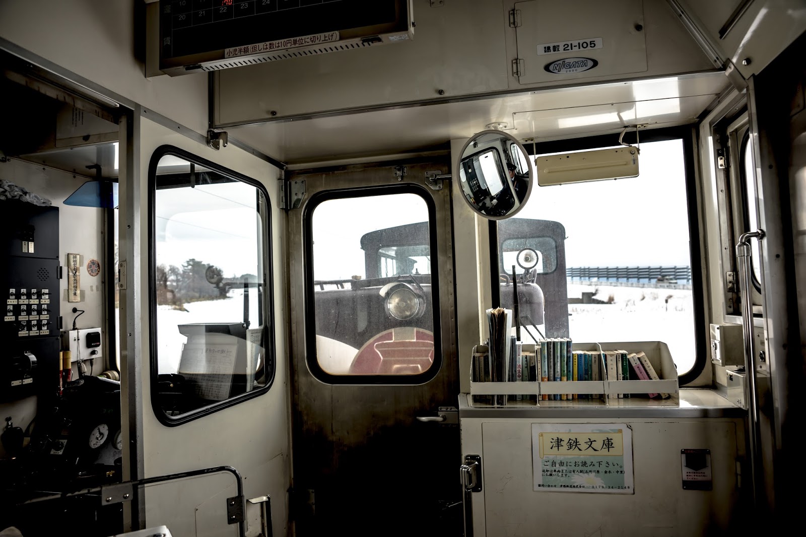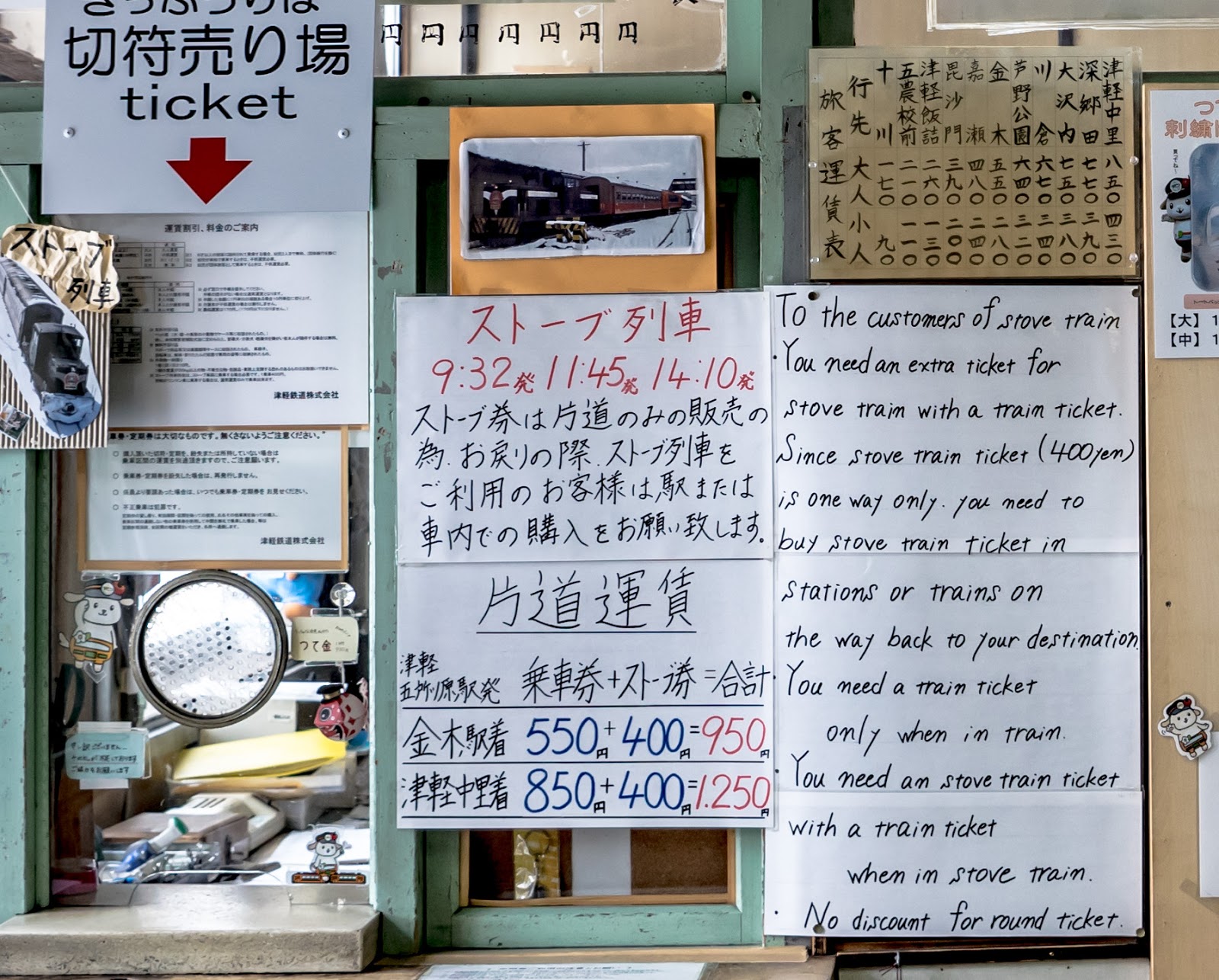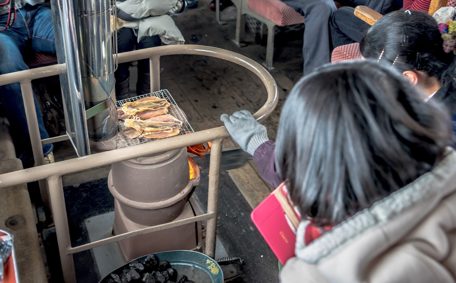 靠著一節車廂的兩個暖爐, 幾塊魷魚乾, 還有穿著顯眼津鐵字樣隨車人員
