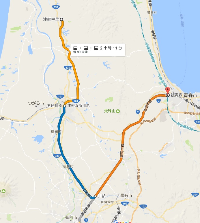 要先搭JR奧羽本線到JR川部站改搭JR五能線